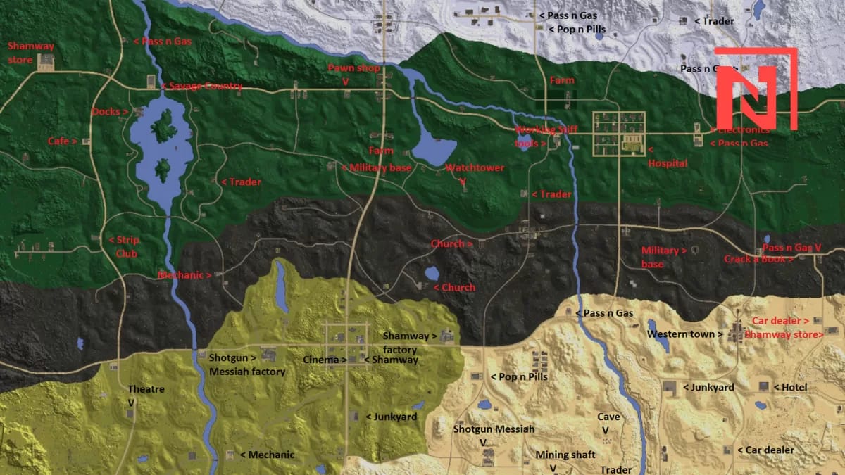 Pois, Navezgane é o cenário principal de 7 Days to Die, descrito como um “raro Éden em um mundo devastado”. Entretanto, diferentemente dos mapas gerados aleatoriamente, Navezgane é fixo e não se reconstrói ao atingir suas bordas. ...
